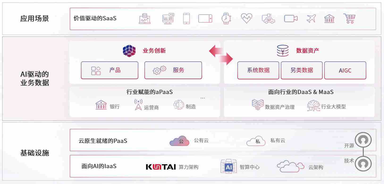 数字时代,,围绕企业数字化转型的关键要素,,AB钱包数码开创性的提出数云融合战略和技术体系框架,,,,着力在云原生、、数字原生、、AI原生和信创产业上架构产品和服务能力,,,为处在不同数字化转型阶段的快消零售、、汽车、、金融、、、、医疗、、、、政企、、教育、、、、运营商等行业客户提供泛在的敏捷IT能力和融合的数据驱动能力,,构建跨界融合创新的数字业务场景和新业务模式,,,,助力企业级客户建立面向未来的核心能力和竞争优势,,,全面推动社会的数字化、、智能化转型升级。。