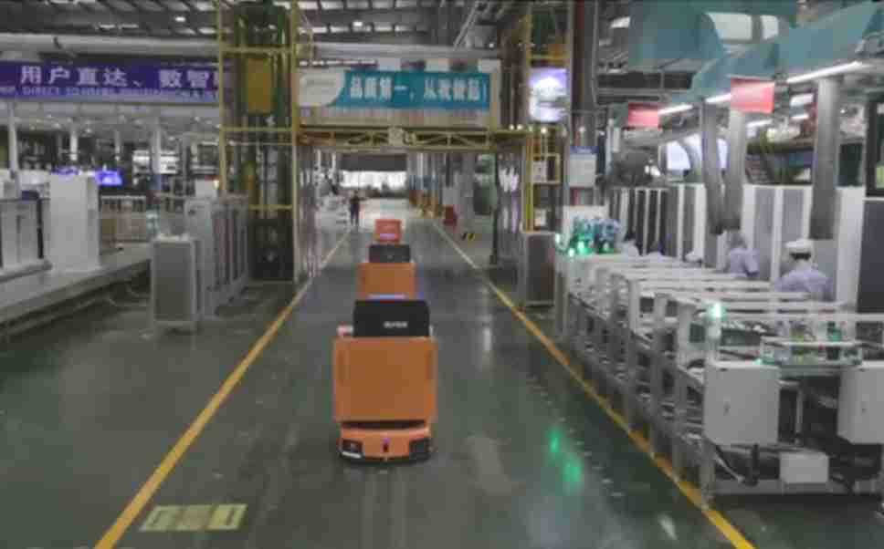 为车载冰箱物流配送打造的智能解决方案,,,,包含产中物流通过潜伏举升AMR搬运至线边,,产后成品物流智能仓储,,,流程包含产中物流智能齐套入库,,线边安灯叫料AMR智能配送至线边,,成品入库、、、、出库,,,,通过无人堆高车机器人,,,,智能仓储管理替代人工作业管理,,实现更高存储、、、更高效率、、、更具柔性化的解决方案。。。